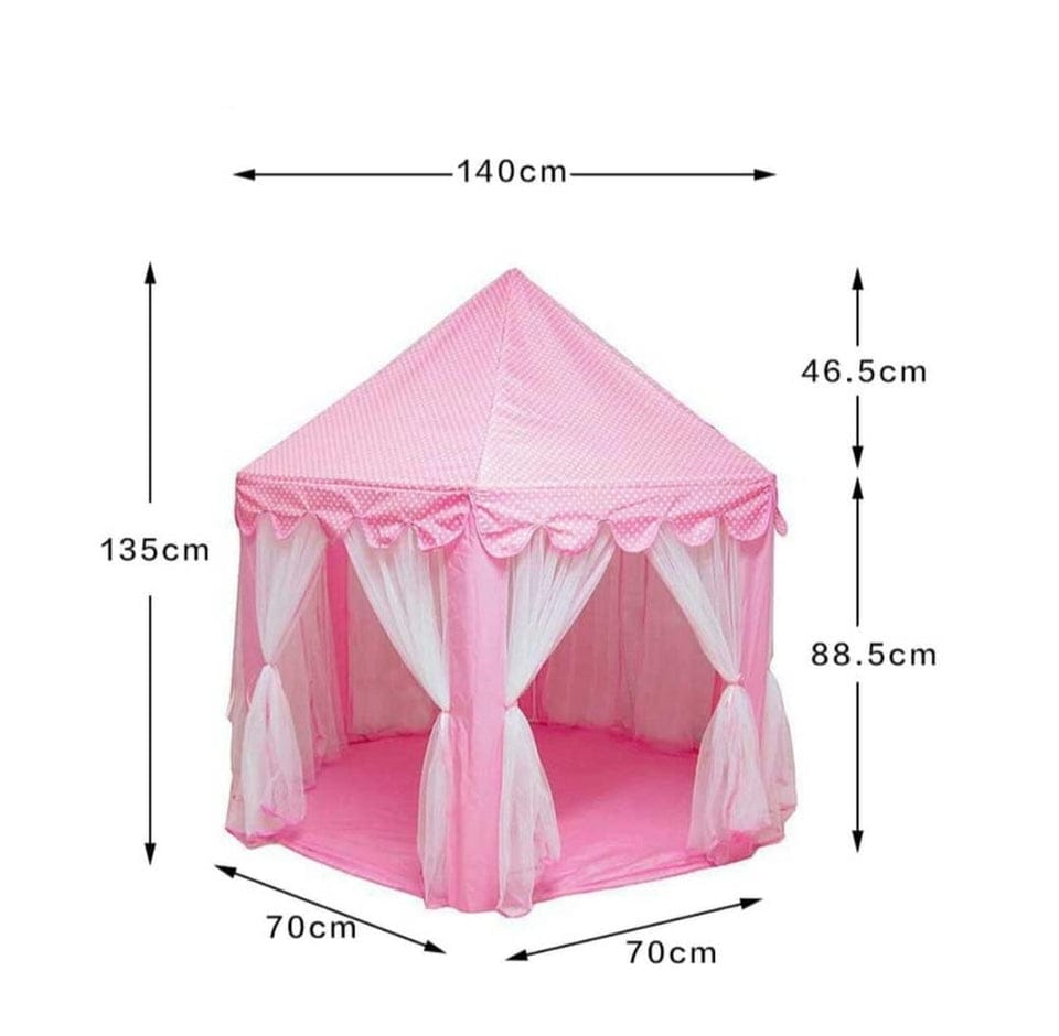 Dečiji šator za igru u obliku zamka pruža idealno mesto za zabavu, skrivanje, druženje i maštovite igre. Dovoljno je prostran da i odrasla osoba može ući unutra, što ga čini savršenim za zajedničke trenutke sa decom.
