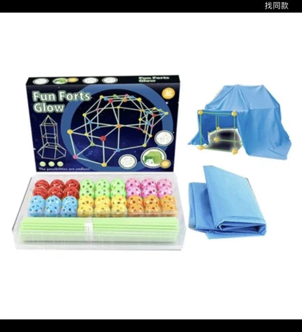 Fleksibilne šipke i čvrsti konektori omogućavaju jednostavno sastavljanje, dok fluorescirajući delovi donose dodatnu dozu magije u svaku konstrukciju. Samo dodaj ćebe preko svoje kreacije – i avantura može da počne!